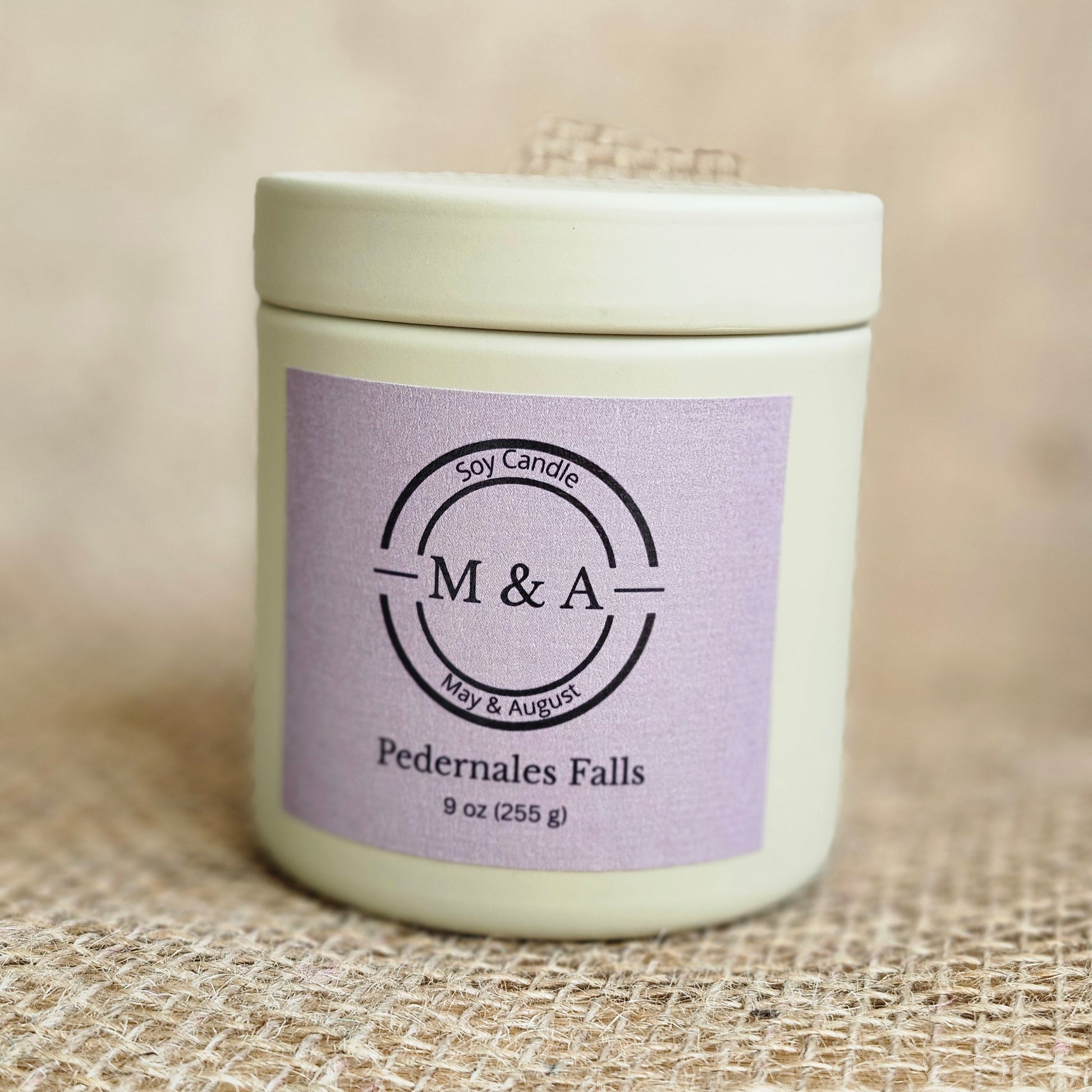 Inspired by the serene blue pools and sculpted limestone of Pedernales Falls, this candle blends fresh lavender, driftwood, and soft amber woods to capture the calming, rugged beauty of Central Texas. Clean marine notes open the scent with a cool, airy breeze, while grounded cedar and cypress create a warm, sophisticated depth. It’s a peaceful, modern lavender scent with a subtle masculine edge — perfect for spa-like spaces, bedrooms, or anywhere you want everyday calm.