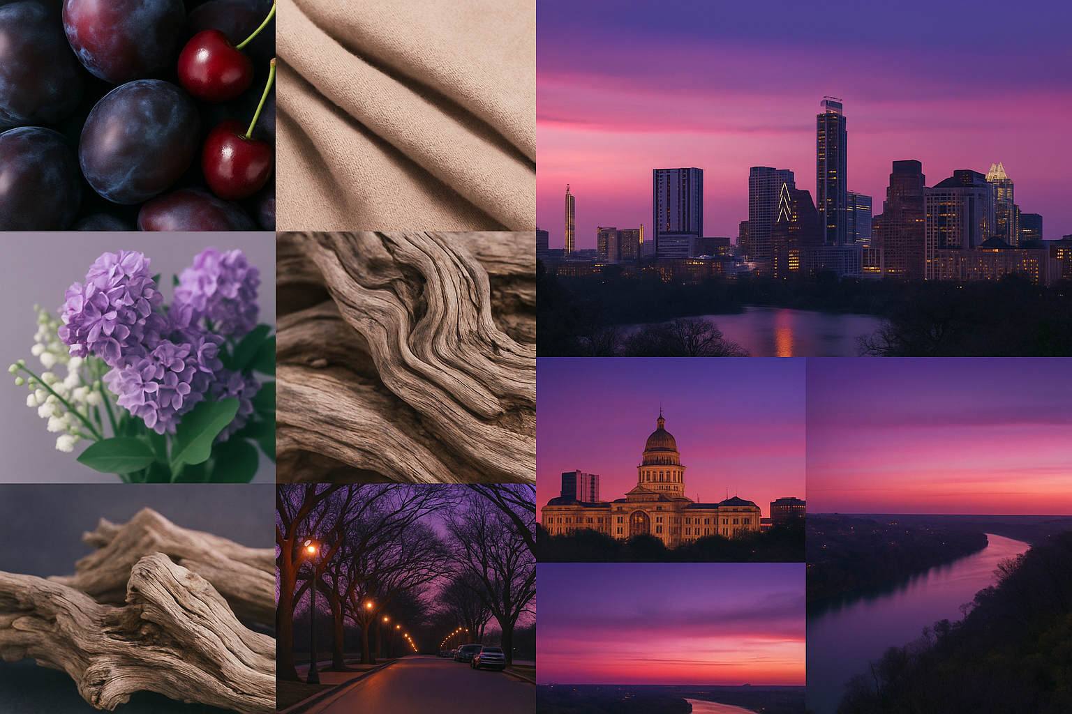 Inspired by the legendary “Violet Crown” sunsets that wash across the Austin skyline, this candle wraps you in a warm, luminous blend of deep plum and soft cashmere. A bright hint of citrus lifts the fragrance at the top, while black cherry adds richness to the heart. Sugared amber, vanilla, and light musk melt together for a grounded, cozy finish, creating a scent that feels both indulgent and serene.